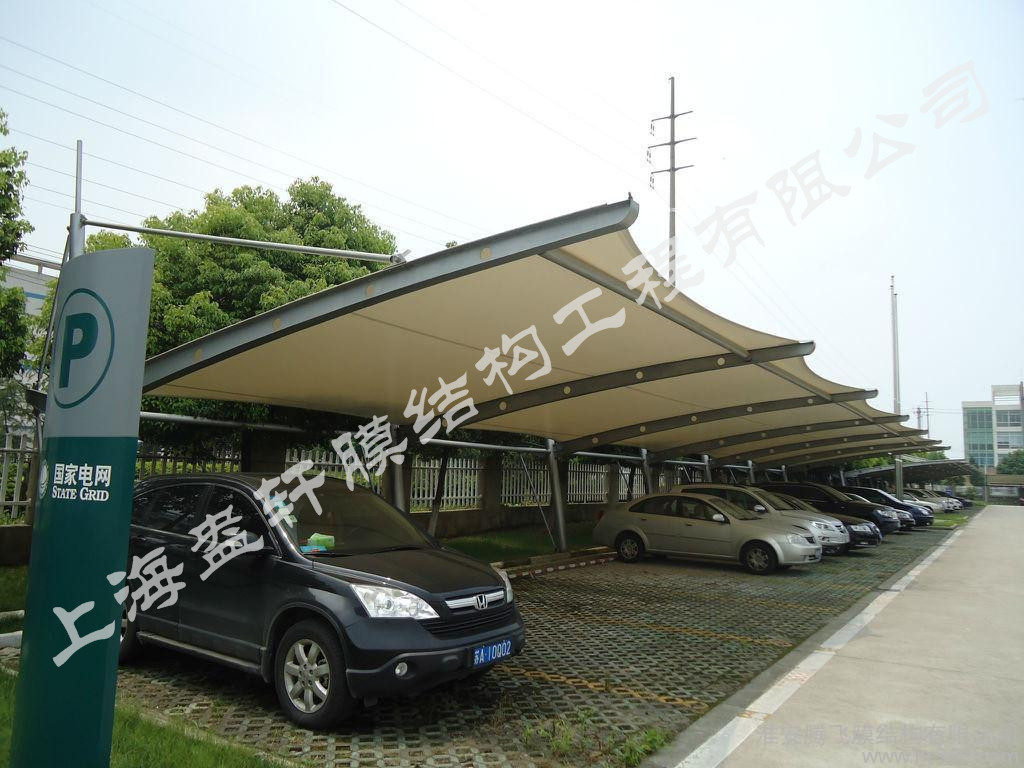 膜结构充电桩车棚,是和车棚一样,添加了充电桩设备,结构具有良好的受力特点——成为大跨度空间结构的主要形式之一。膜结构建筑所采用的膜材具有卓越的阻燃性和耐高温性,故能很好的满足防火要求。由于结构自重轻,又为柔性结构且有较大变形能力,故抗震性能好。工期短:膜材裁剪。拼合成型及骨架的钢结构、钢索均在工厂加工制作,现场只需组装,施工简便,故施工周期比传统建筑短。